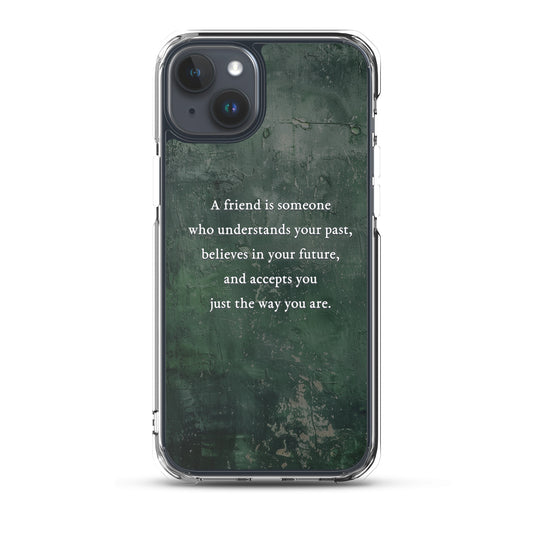 "A FRIEND IS SOMEONE WHO..." MagSafe® clear case for iPhone®