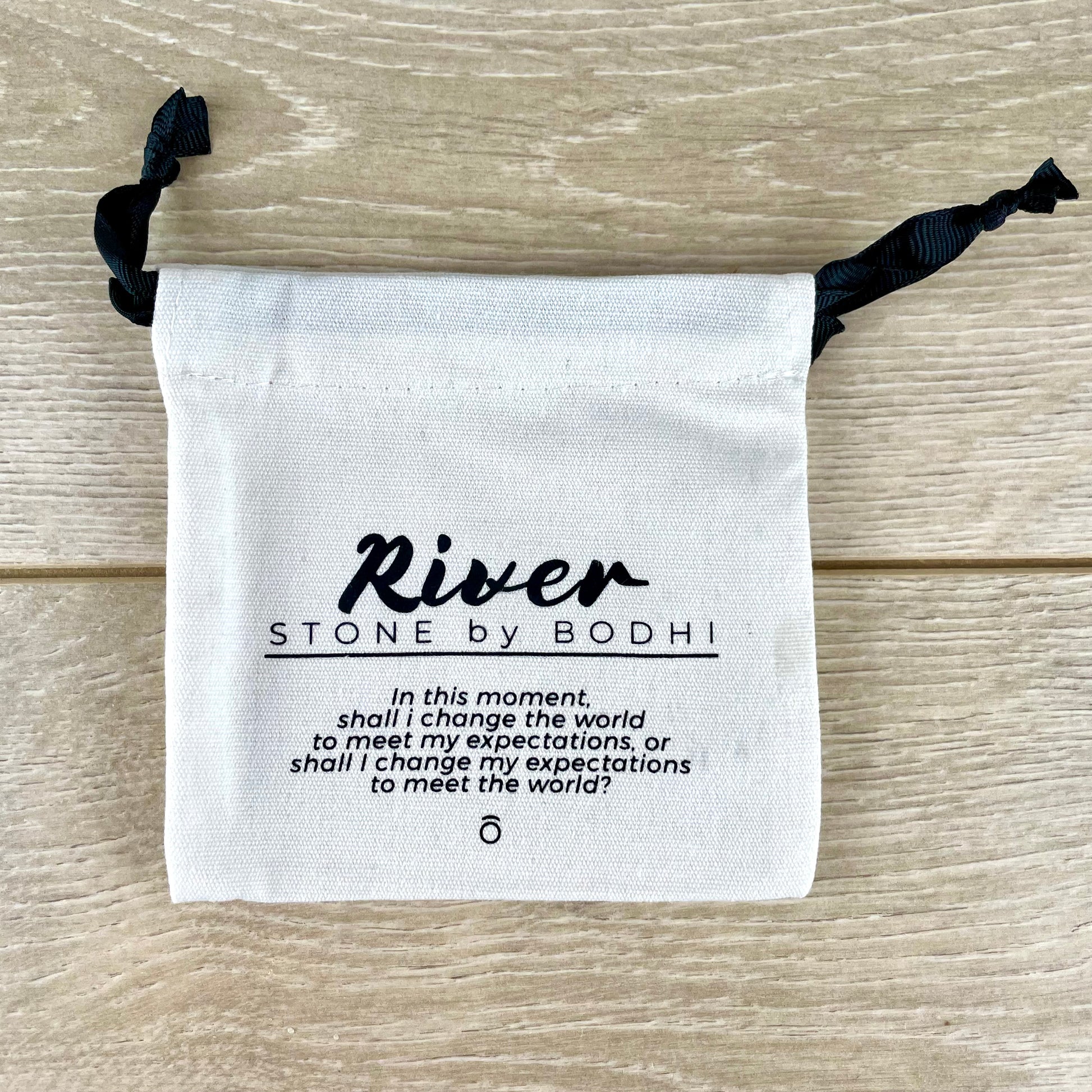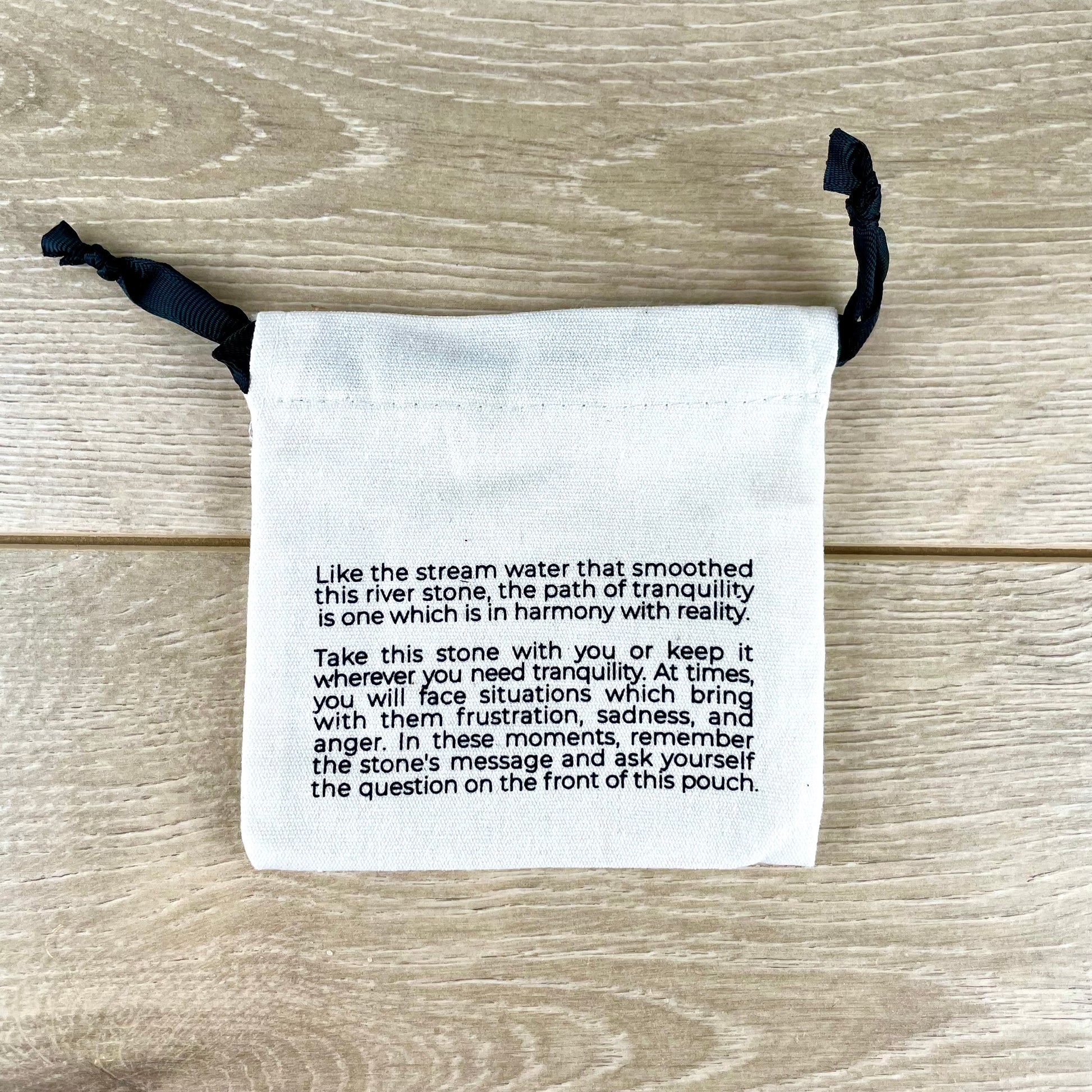 Like the stream that smoothed this river stone, the path of tranquility is one which is in harmony with reality. Take this stone with you or keep it wherever you need tranquility. At times, you will face situations which bring with them frustration, sadness, and anger. In these moments, remember the stone's message and ask yourself the question on your stone's pouch: In this moment, shall I change the world to meet my expectations, or shall I change my expectations to meet the world?